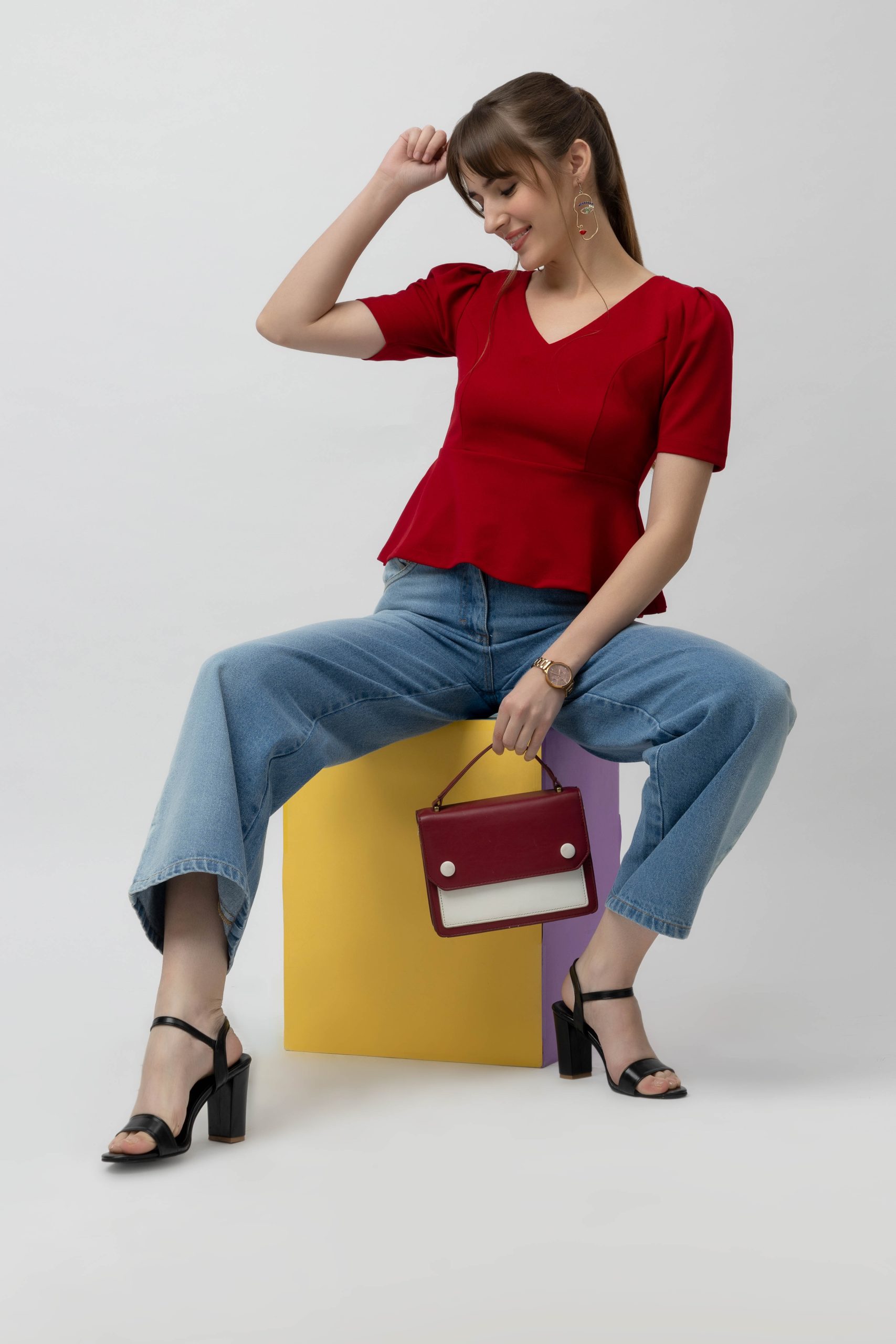 7onz Women’s Solid knitted top with half sleeves and textured fabric for a fitted look. Article no :- FSW23